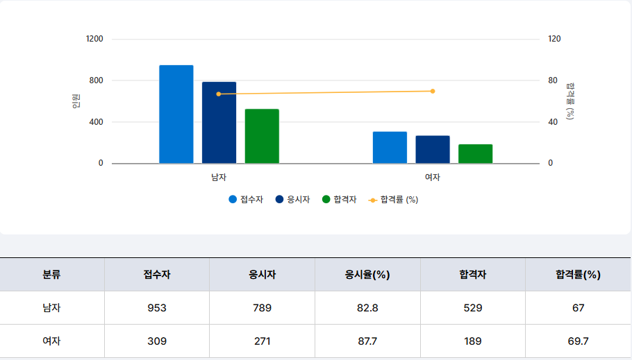 | 응시 | 합격 | 합격률(%) | 응시 | 합격 | 합격률(%) | |